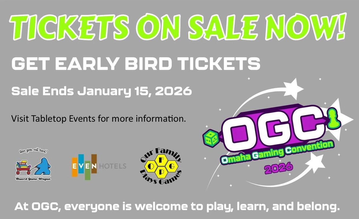 In 2025, they have partnered with The Board Game Wagon to create a new board game convention in Omaha, NE - Omaha Gaming Convention, which will run from July 10 - 12, 2026. Their goal is for this to be an annual convention in the Omaha area that is strictly board game focused.